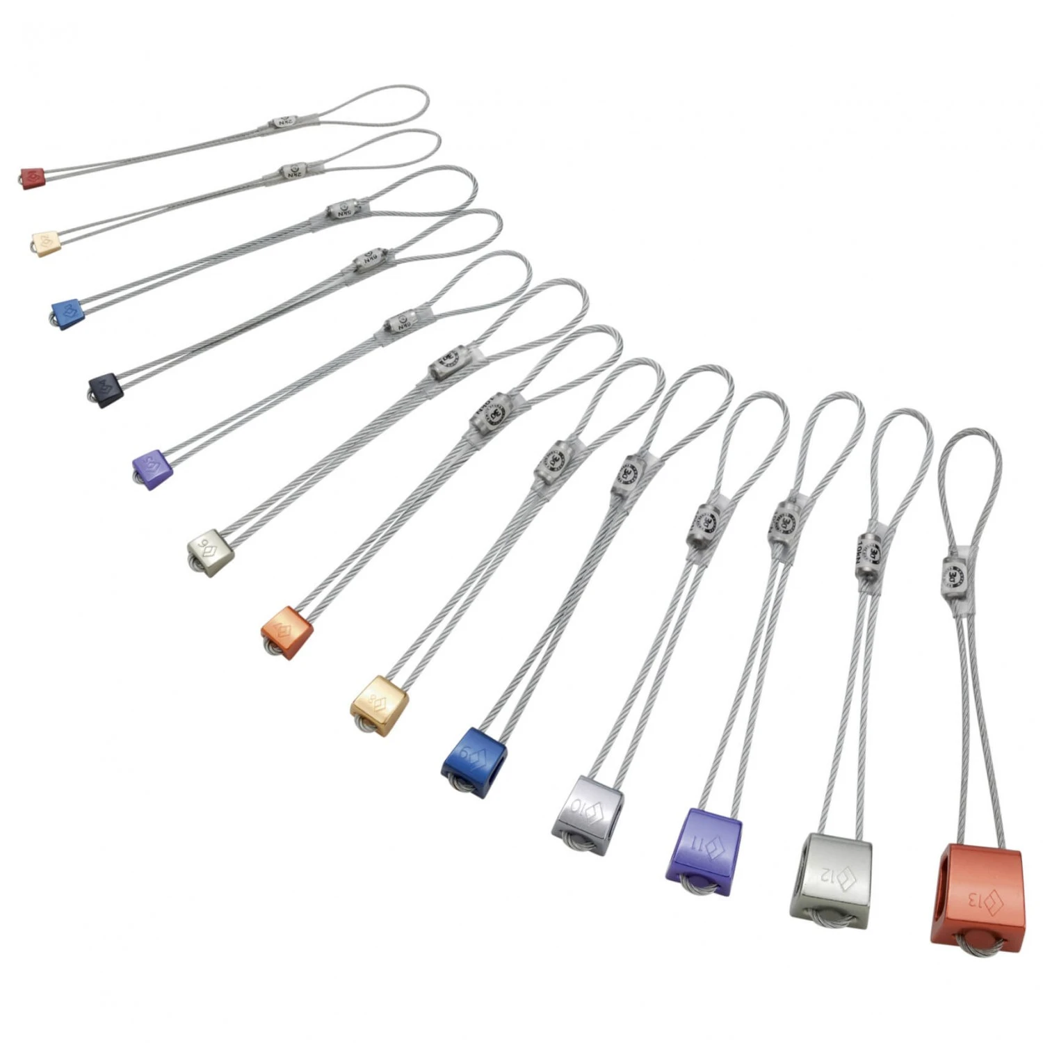 Les coinceurs Stoppers de la marque Black Diamond peuvent se placer dans n’importe quelle fissure. Ils se posent de multiples façons et sont très polyvalents puisqu’il existe 13 tailles différentes ! Les têtes robustes sont en aluminium et elles ont des bordures arrondies, ce qui permet de les retirer plus facilement. Grâce au code couleur, les différents coinceurs sont faciles à distinguer et la bonne taille est toujours à portée de main. C’est top !